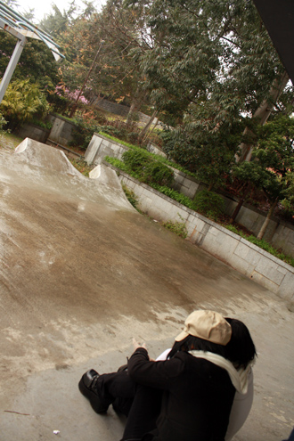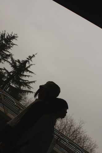 雨宿りしながら撮影中。